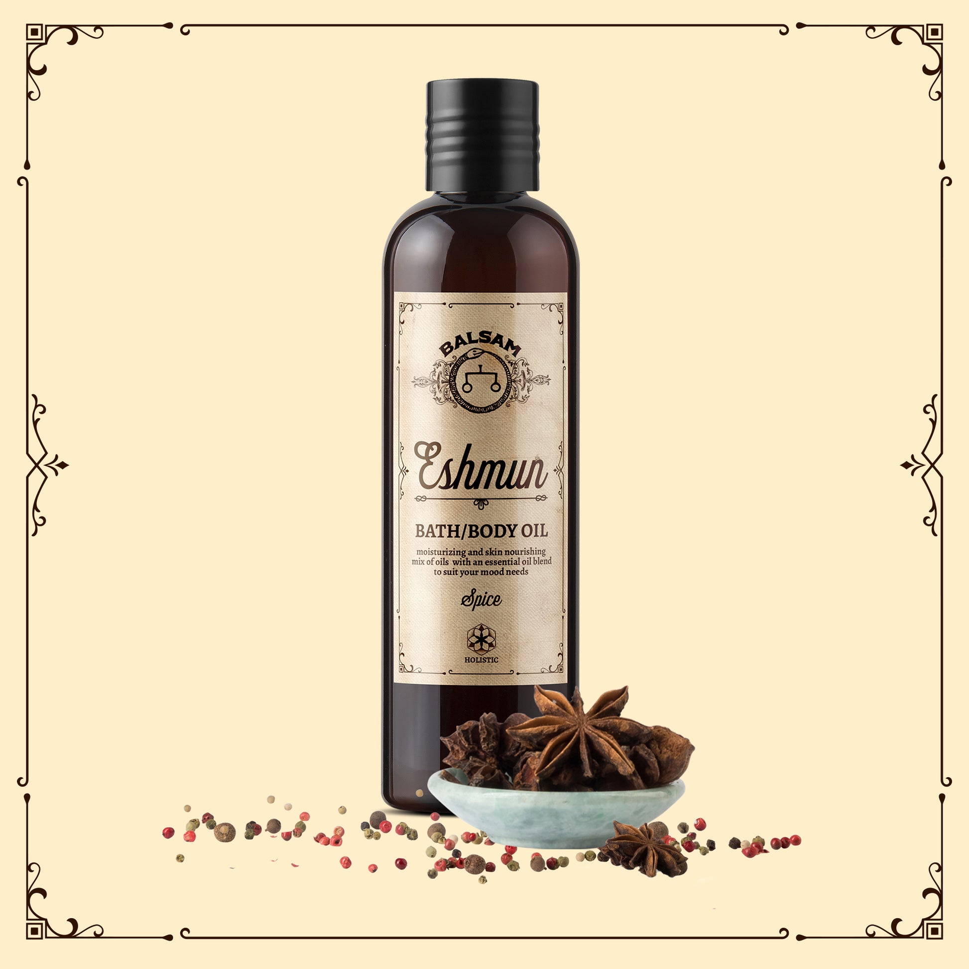 a luxurious blend of skin loving oils like Apricot , Grape Seed, Almond and Jojoba infused with a warming selection of essential oils and resins such as Carnation, Clove, Black Pepper and Myrrh to improve circulation when massaged onto your skin and surround you with a warm spicy sensation.